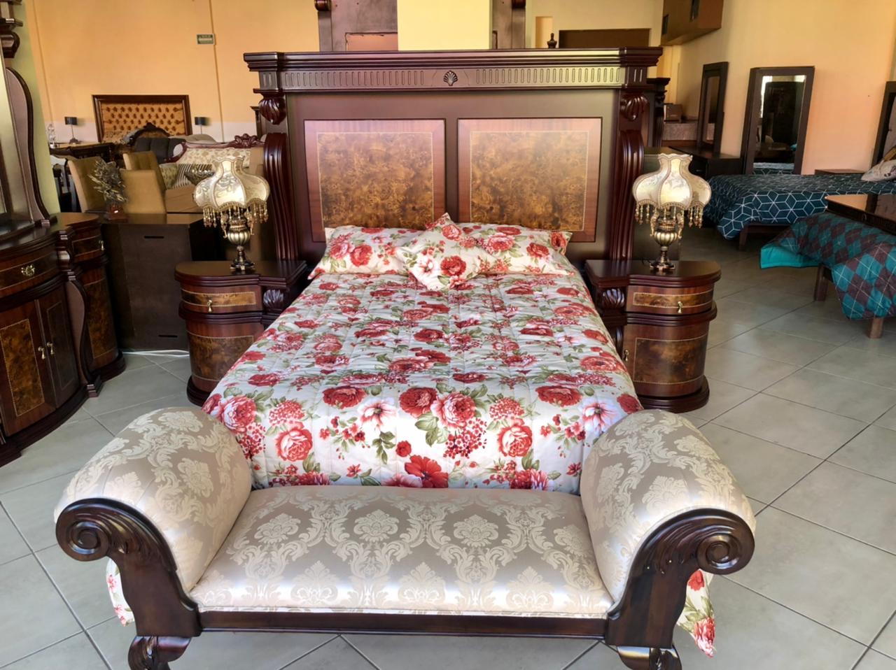 Recamara trabajada en madera de pino, con chapa de raíz y terminados de muy buena calidad